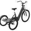 Both Plus and Supreme models are pedal-assisted e-trikes, while Plus has a hub motor and a 9-speed derailleur, and Supreme has a mid-drive motor and a 3-speed internal gear.