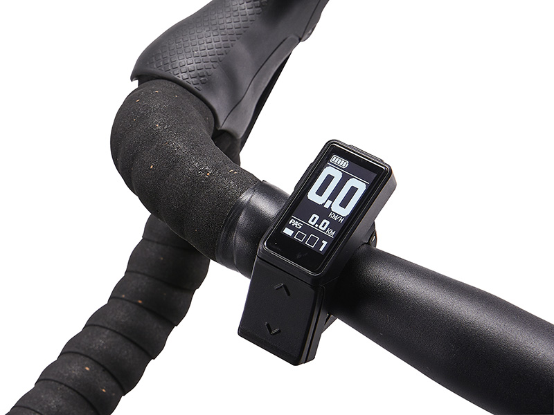 [LCD display] A mini LCD display that shows the current speed, level of assistance, and state of charge.